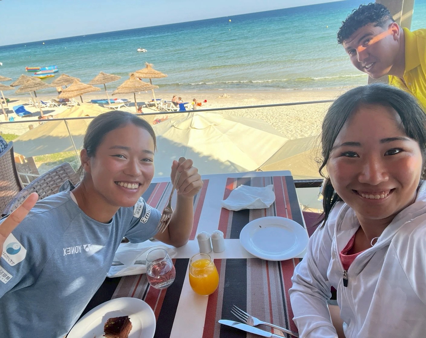 「安定感」が私の自信のあるところなのですが、チュニジアに来てからはそれが無く、簡単なミスも沢山してしまい不安になっていましたが、ようやくでコートに慣れて自信が戻り、今日は自分の中では良い試合ができたのでそれが一番嬉しいです!