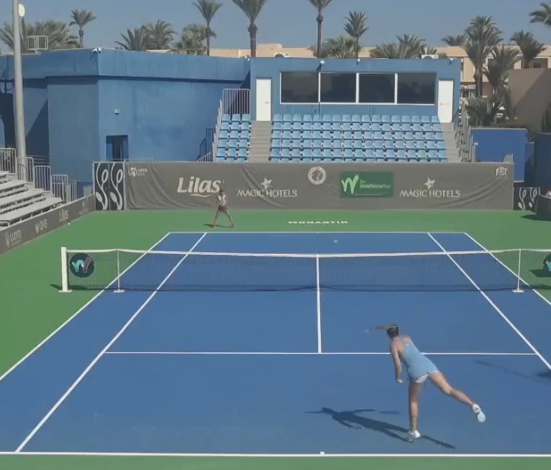 こんにちは。西村佳世です。チュニジア2週目(2大会目)の準決勝で、お相手はロシアのMaria Golovina 選手(18歳)で、私が年内目標にしているWTA500番以内まであと一歩の選手で、試合の空き日に一緒に練習していました。