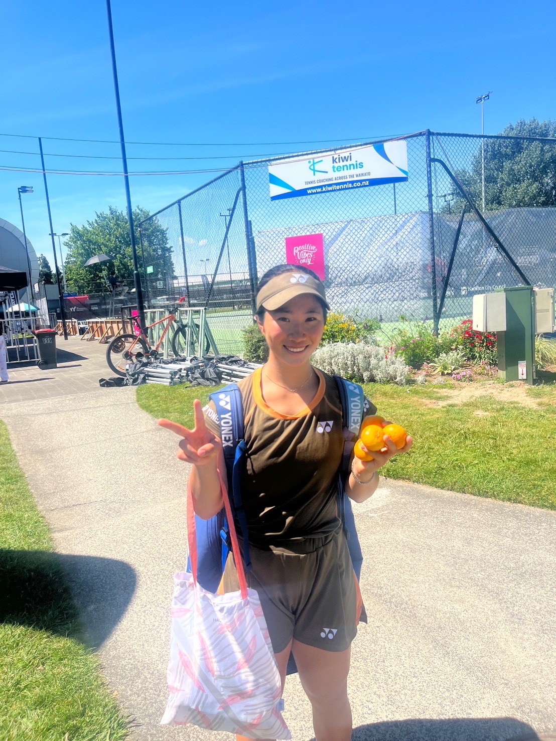 finalセットでは、かなりTori Russell 選手に疲れが見え、1ゲーム目は落としましたが、このまま同じプレーを続ければ勝てると思い、少し余裕ができて横浜大会以降、課題としていたリターンや勇気を出して攻撃するプレーもでき、その結果勝つことができて自分のプレーにとても満足できた試合でした。